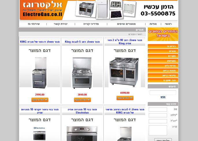 חנות וירטואלית למוצרי חשמל המתמקד במוצרים לבנים כדוגמת: תנורים,כיריים,מקררים,מדיחי כלים,מכונות כביסה ועוד..