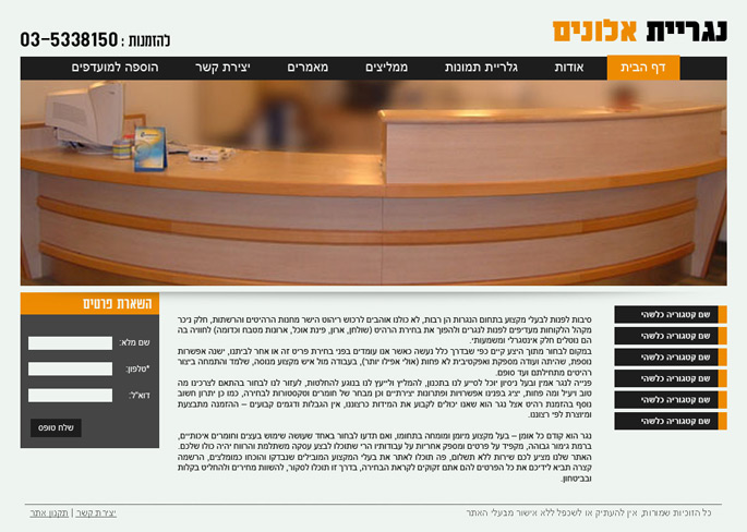 אתר הבית של נגריית אלוניםם, באתר ניתן לראות מגוון עבודות שבוצעו לבניית מטבחים, ריהוט משרדי וכן דלפקי קבלה.